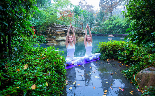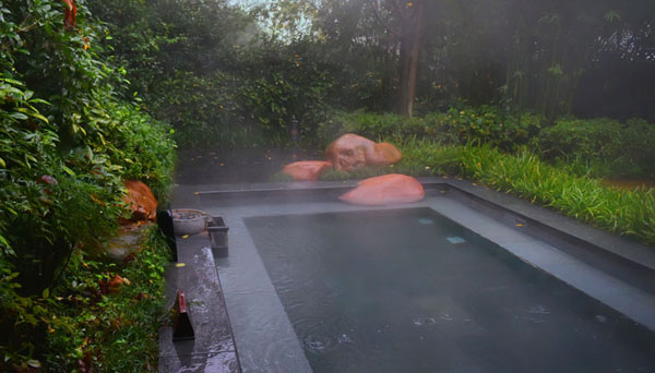 做完瑜伽,在温暖的温泉中消散疲劳,恢复身心。温泉是一种自然疗法,大部份的化学物质会沉淀在皮肤上,改变皮肤酸碱度,有吸收、沉淀及清除的作用。温泉热浴不仅可使肌肉、关节松弛,消除疲劳,还可扩张血管,促进血液循环,加速身体新陈代谢。