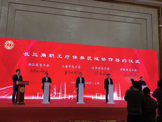 据悉,本次活动汇聚了沪苏浙皖三省一市总工会分管主席、部分地市总工会负责人以及部分疗休养院所(基地)负责人出席。在活动现场,三省一市总工会携手合作,签署了《推进中国长三角地区职工疗休养区域战略合作协议》,明确今后沪苏浙皖四地工会将以职工疗休养院所、职工(劳模)疗休养基地为平台,资源共享,相互提供规范、优质的疗休养资源服务,相互合作宣传推介职工疗休养产品。